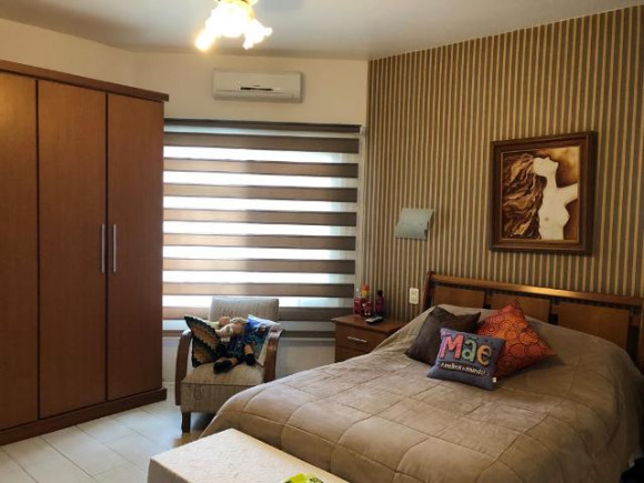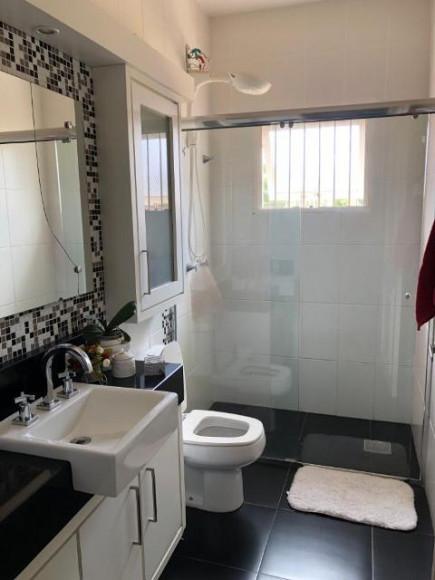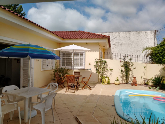 Casa de esquina em alvenaria com fino acabamento, construção sólida com laje e telhas. Possui 04 dormitórios sendo 01 suíte, 02 banheiros sociais, sala de estar, sala de tv com lareira, cozinha, área de serviço, garagem para 02 carros com pia e churrasqueira, piscina e gerador com instalação em todas as peças e aquecimento a gás em todos os banheiros e cozinha. Os móveis sob medida ficam na casa.