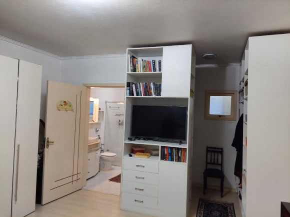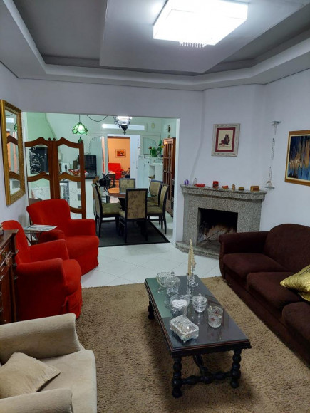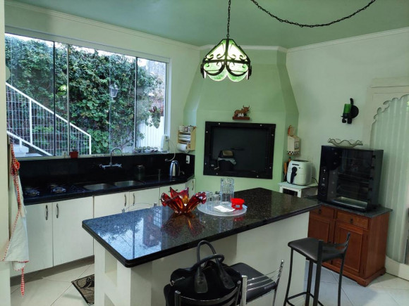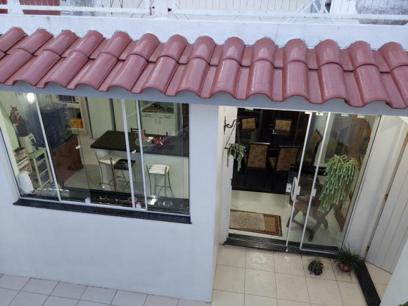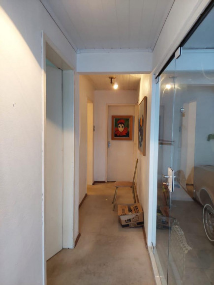 Casa em alvenaria e laje com estrutura p 2° piso e excelente posição solar, frente oeste. Possui 02 dormitórios sendo 01 suíte com closet, 02 salas de estar sendo 01 com lareira, cozinha com bancada em granito e churrasqueira, 02 banheiros, lavanderia, pátio e terraço e garagem fechada. Ficam os móveis sob medida.