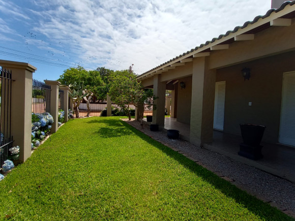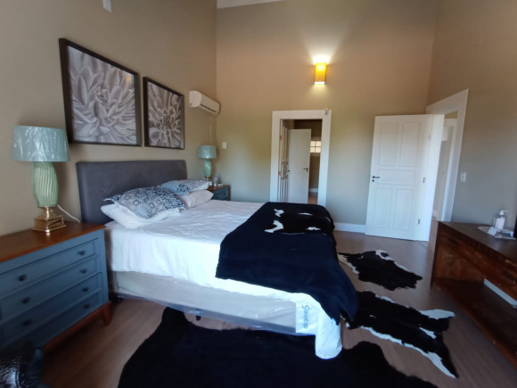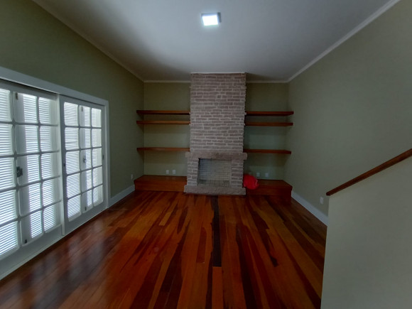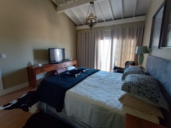 Sobrado amplo em alvenaria: Hall de entrada, sala de estar com lareira com dois ambientes, lavabo, sala de jantar, escritório, sala de leitura/individual com lareira, cozinha, despensa, lavanderia, banheiro, dependência de empregado, banheiro, na parte superior dois dormitórios amplos, uma suíte com sacada, banheira e closet, mezanino com sacada e vista para lagoa. Na parte inferior 01 apartamento independente com saída pela lateral com : sala de estar ampla, cozinha, banheiro, dormitório. Fundos: Espaço gourmet fechado, com churrasqueira, pia e balcão americano, tudo em madeira nobre. Vaga de garagem para 03 carros com um imenso pátio ao redor do imóvel. Terreno: 20 x 30 (aceita imóvel de menor valor )