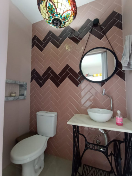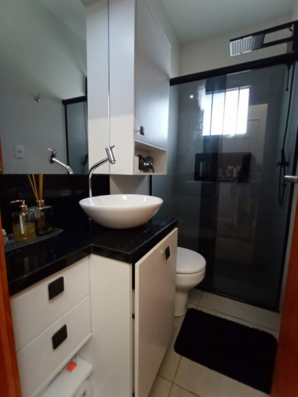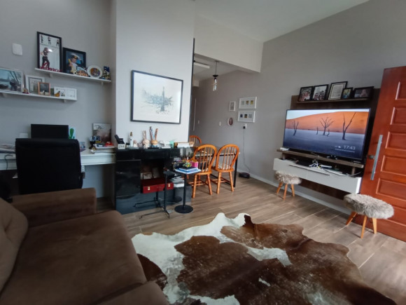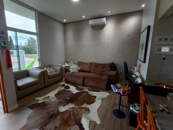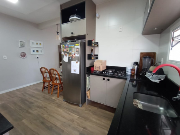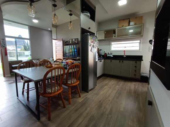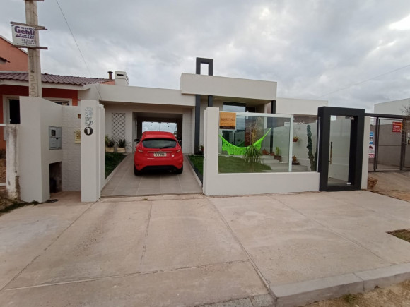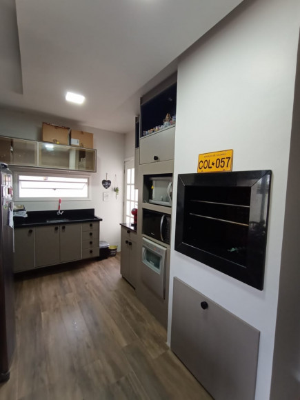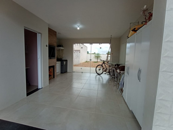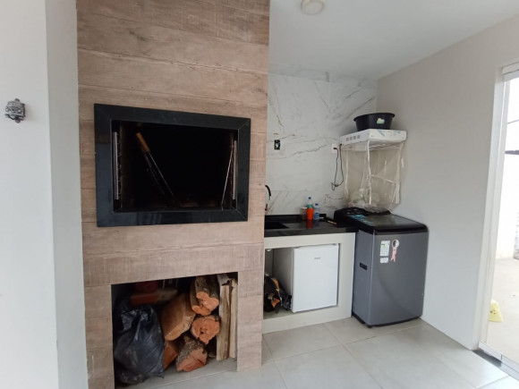 CASA DE ALVENARIA E LAJE: 02 dormitórios, sala de estar com lareira e cozinha sob medida (bancada de escritório sob medida), banheiro social com box de vidro, área de serviço, garagem ampla com churrasqueira e pia de mármore fechada com vidro, terreno amplo, todo fechado.