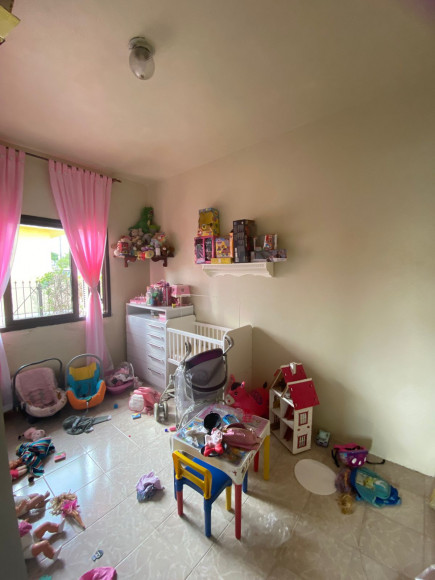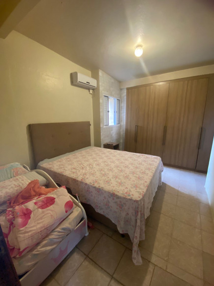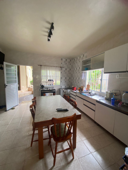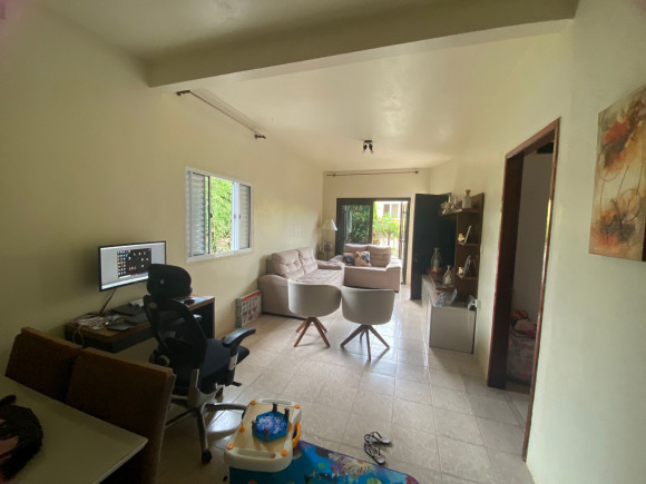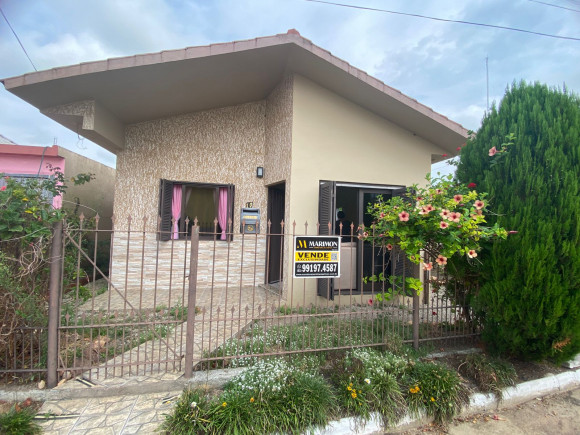 Casa de alvenaria e laje 03 dormitórios, sala estar e jantar. cozinha e banheiro social com box. Dois espaços com churrasqueira, banheiro e garagem para dois carros Amplo pátio com flores e árvores frutíferas. Excelente posição solar!