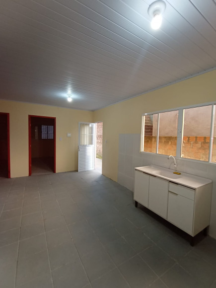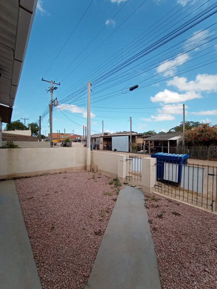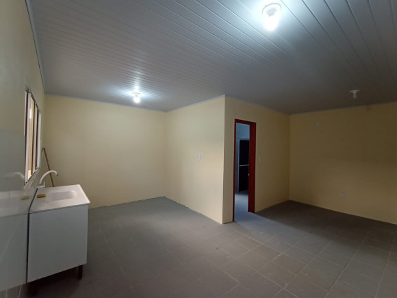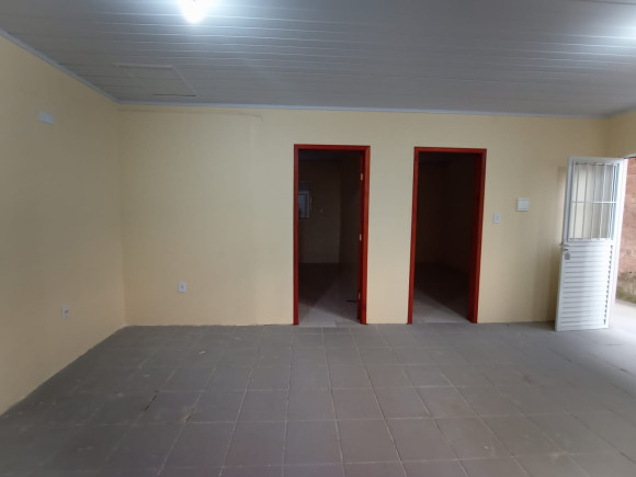 Casa de Alvenaria: 2 dormitórios, sala e cozinha conjugadas, banheiro social, pátio nos fundos. Rua calçada e apta a financiamento.