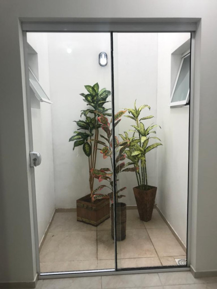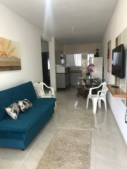 Apartamento no térreo, contendo 02 dormitórios, sendo 1 suíte , sala, cozinha, banheiro social, área com lavadeira e churrasqueira,
