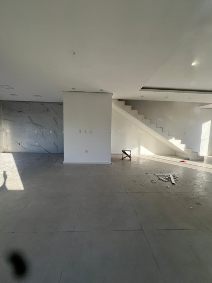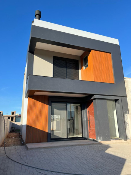 Sobrado contendo 03 dormitórios sendo uma suíte, sala e cozinha conjugada, churrasqueira, lavanderia, lavabo banheiro social.