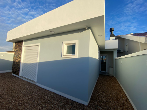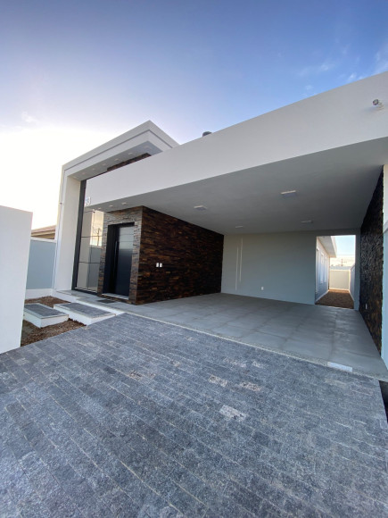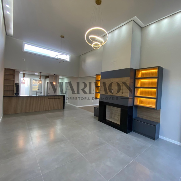 Linda residência em alvenaria e laje, com 147m² de área construída, contando com 3 dormitórios, sendo 1 suíte, banheiro social, sala de jantar, sala de estar e cozinha em conceito aberto e móveis planejados, a cozinha dispõem de churrasqueira e a sala conta com uma linda lareira. O Imóvel possui também, lavanderia, pátio e garagem para 2 carros, além da laje, forro de gesso com uma belíssima iluminação, sistema de água quente em todo o imóvel, esperas para ar condicionado, portão eletrônico, câmeras de monitoramento e alarme.