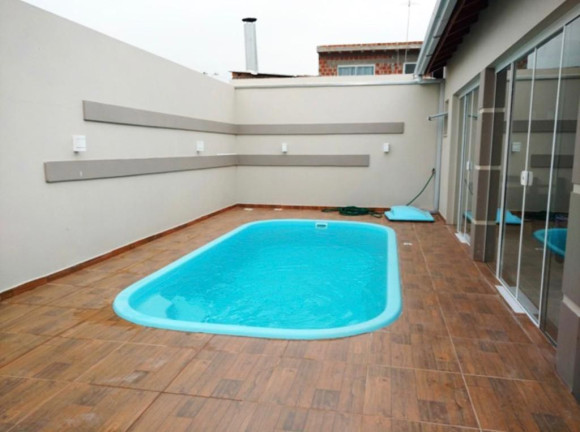 Casa de alvenaria laje e telha: 02 dormitórios ( sendo 01 suíte), sala de estar e cozinha conjugadas, banheiro social com box, lavanderia (podendo ser mais 01 Dormitório) espaço gourmet com churrasqueira, garagem para 02 carros, piscina e abrigo lateral. Terreno: 10,00m x 25,00. Excelente posição solar e imóvel localizado entre centro e praia.