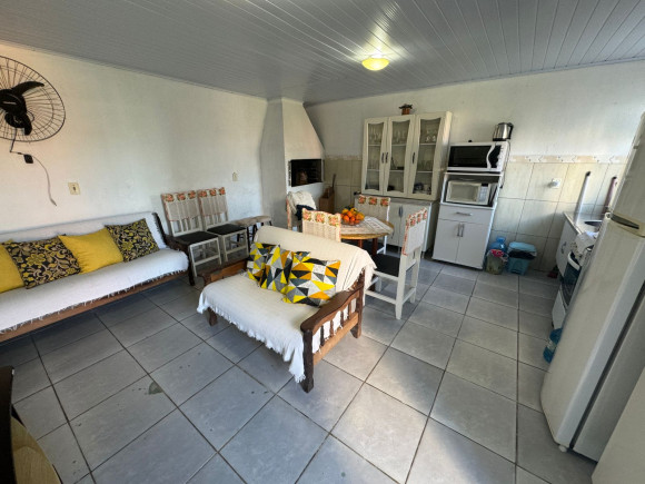 Casa de alvenaria com forro e telhas de brasilit, o imóvel possui 1 dormitório, sala e cozinha conjugadas e 1 banheiro. Terreno medindo 10x30. Perto da Lagoa. Na parte da frente possui um chalé com 1 dormitório, sala, cozinha e banheiro.