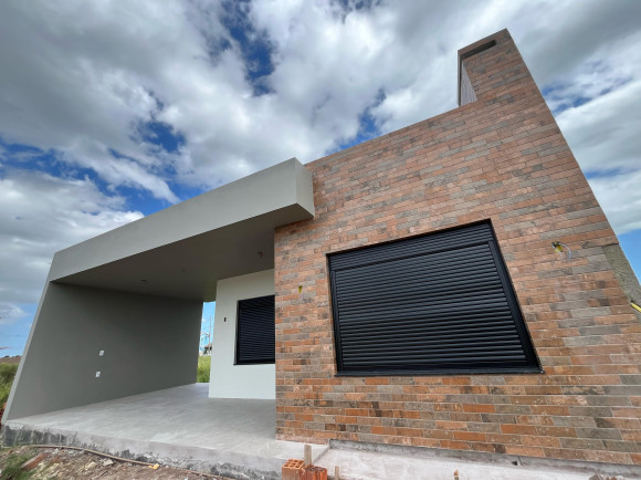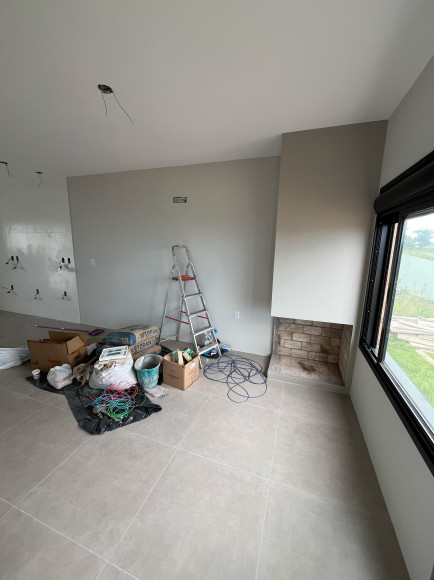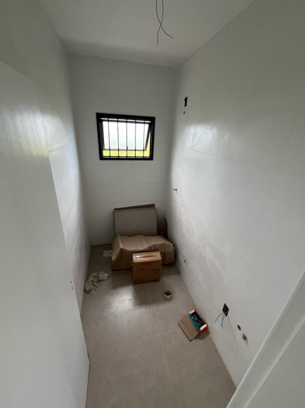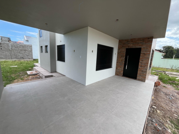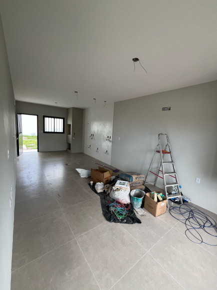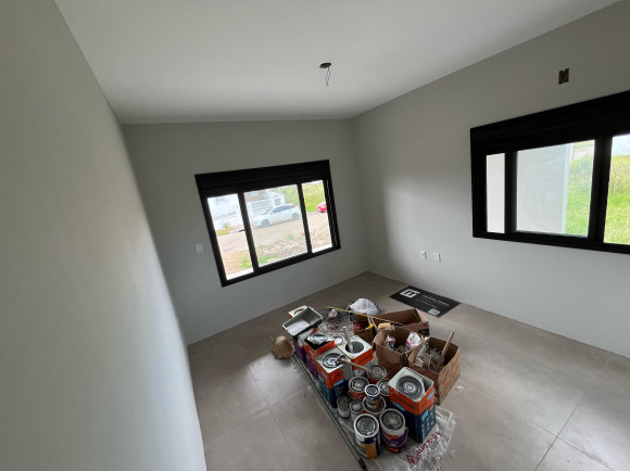 Casa de alvenaria e laje: 02 dormitórios (sendo 01 suíte), sala/cozinha, banheiro social, lavanderia e garagem. Terreno: 10,00m x 25,00m.