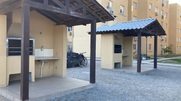 Apartamento: 2 dormitórios, sala e cozinha com piso flutuante e moveis planejados em mármore, banheiro com box e vaga para carro. Condomínio fechado, com monitoramento 24 horas, playground, quiosques com churrasqueira, salão de festa e vaga de garagem.