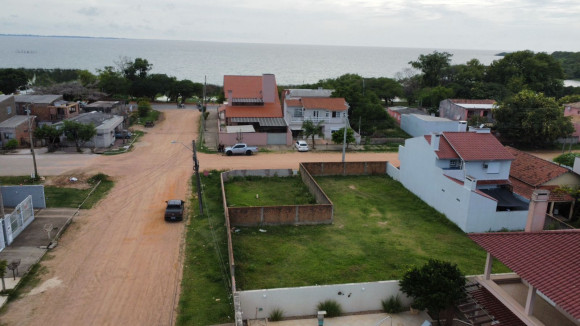 Terreno na Praia. Fazendo esquina, entre as ruas São João e Sepé Tiaraju. Medindo 29,90m x 21,90m, respectivamente.