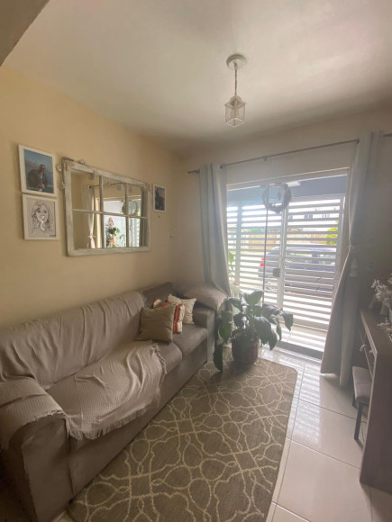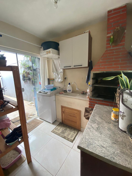 Casa de alvenaria e laje com 54m², 01 hall de entrada, 01 sala de estar, 01 sala de jantar, 01 cozinha, 01 banheiro, 02 dormitórios ( 01 com móveis sob medida e ar condicionado), 01 vaga de estacionamento, 01 área gourmet com lavanderia.