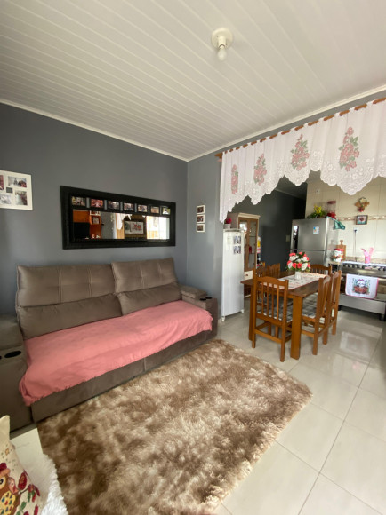 Casa de alvenaria com forro de PVC, que oferece um ambiente acolhedor e funcional. Com 1 dormitório, sala e cozinha conjugadas (cozinha com móveis planejados) e 1 banheiro com box, este imóvel é ideal para quem busca conforto e praticidade. Além disso, o imóvel conta com uma lavanderia, churrasqueira para momentos de lazer e um cômodo extra nos fundos, que pode ser utilizado como dormitório ou outro espaço conforme sua necessidade. O terreno de 5,00 x 27,50 metros proporciona versatilidade e espaço.