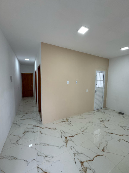 Residência recém-construída no loteamento Campos Verdes, com dois quartos, sala, cozinha e banheiro. Possui piso em porcelanato, esquadrias de alumínio e estrutura preparada para um segundo pavimento. Terreno com dimensões de 5m x 25m.