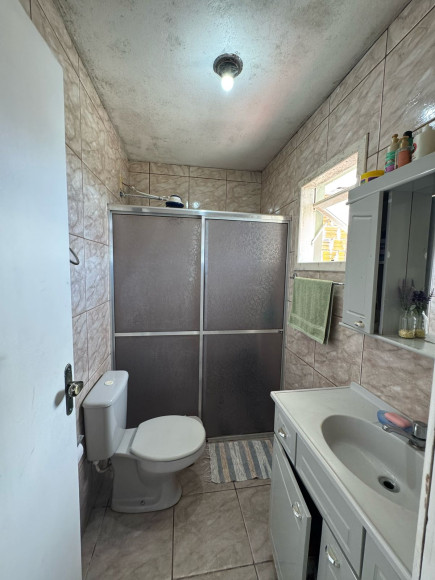 Sobrado com 130m² contendo no pavimento térreo sala de estar com lareira, sala de jantar, cozinha, 01 banheiro e garagem, e no pavimento superior 03 dormitórios, sendo um deles com sacada, 01 banheiro, pátio grande nos fundos. Terreno com 300m², medindo 10x30. Imóvel apto a financiamento.