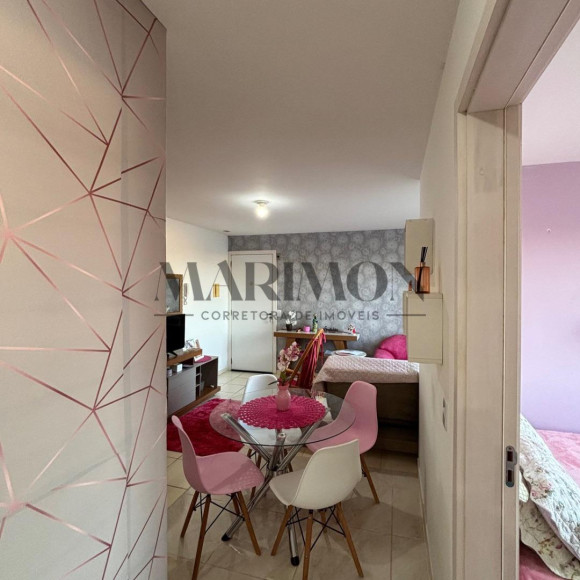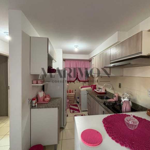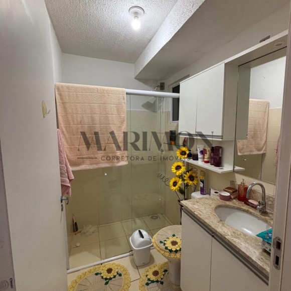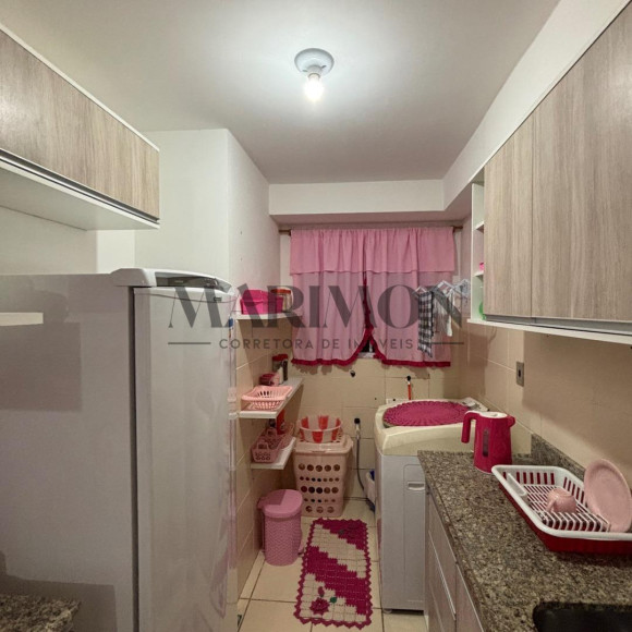 Apartamento à venda no Residencial Laguna, com 2 dormitórios, sala e cozinha integradas, 1 banheiro, vaga para carro, playground, área de churrasqueira e salão de festas.