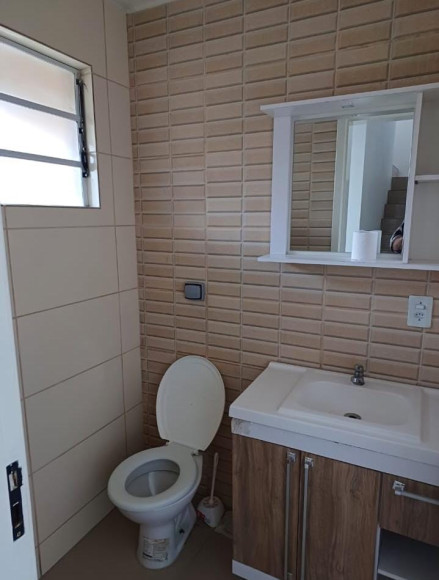 Casa de alvenaria 02 casas, uma com laje contendo 01 dormitório, sala, cozinha conjugada e banheiro, churrasqueira na cozinha, nos fundos um sobrado iluminado com 01 dormitório, sala, cozinha e banheiro, pátio grande terreno 5,70x28,00. área construída 86m².