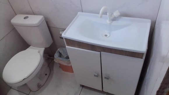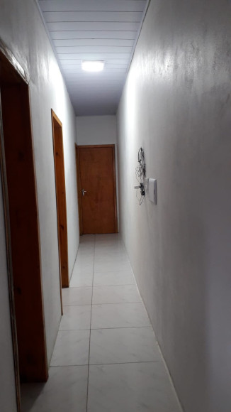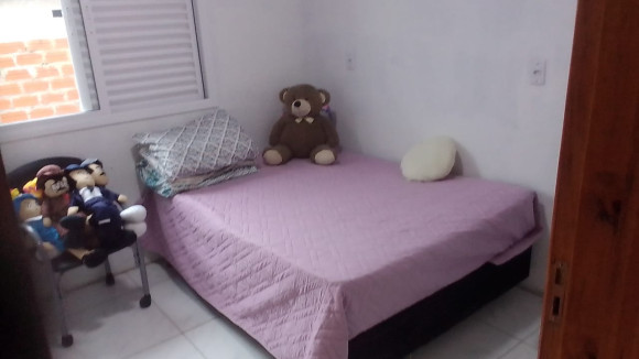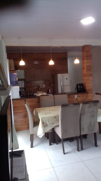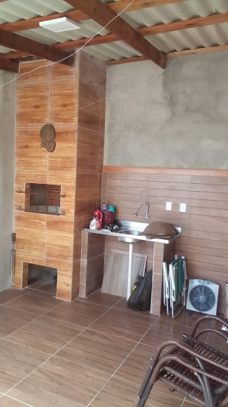 Imóvel no Loteamento Fazenda do Sobrado Residência em alvenaria, com forro em PVC e cobertura de telhas. O imóvel conta com três dormitórios, sala de estar integrada à sala de jantar, cozinha com bancada e banheiro equipado com box. Na parte dos fundos, há um espaço coberto com churrasqueira, lavanderia e um segundo banheiro. Terreno medindo 5,75 metros de frente por 32,00 metros de profundidade.