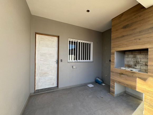 Casa de alvenaria ,sala e cozinha conjugadas com lareira e churrasqueira na área dos fundos, 2 quartos ,1 deles suíte, mais um banheiro social, garagem para o carro