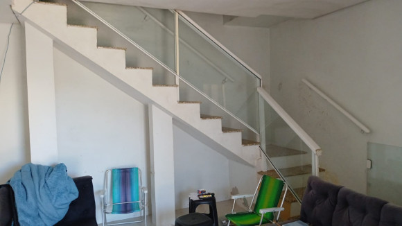 Sobrado em alvenaria e laje, contendo na parte de inferior: 02 dormitórios, sala e cozinha conjugados com rebaixamento em gesso, banheiro, garagem e piscina. Na parte de superior contém: 03 dormitórios e 01 banheiro.