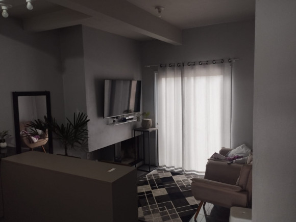 Sobrado localizado no Loteamento Campos Verdes, com 59,47m² de área construída. Possui hall de entrada, sala de estar, cozinha com móveis sob medida, dois dormitórios, banheiro social e abrigo para carro. Terreno com área total de 156,20m², com medidas de 5,00m x 32,50m x 5,59m x 29,99m. Frente Sul. Imóvel apto a financiamento.