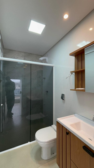 Moderno, confortável e pronto para morar! Este lindo sobrado oferece: 3 dormitórios bem distribuídos 2 banheiros Sala de estar aconchegante Cozinha funcional Lavanderia separada Terraço com churrasqueira – perfeito para reunir família e amigos Terreno medindo 11m x 14m