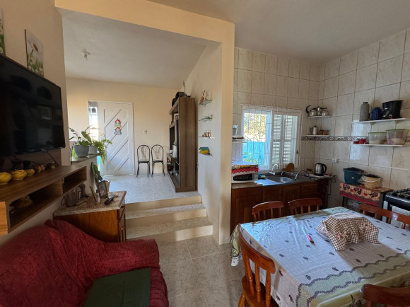 Casa de alvenaria com laje e telhas, oferecendo 70 m² de área construída. Conta com 2 dormitórios, sala de estar aconchegante, cozinha funcional, banheiro social, lavanderia e garagem com churrasqueira. Terreno medindo 10 x 25 metros, com pátio totalmente fechado e seguro. Frente voltada para o sul.