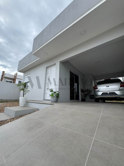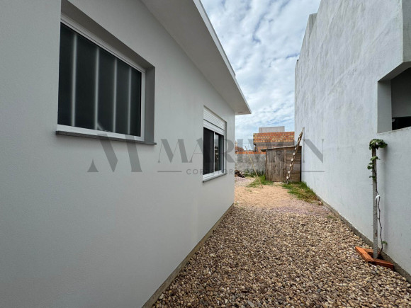 Casa nova de alvenaria e laje, com 95,50m² de área construída, localizada no Loteamento Campos Verdes, em São Lourenço do Sul. O imóvel dispõe de dois dormitórios, sendo uma suíte, sala com lareira integrada à cozinha com móveis planejados, banheiro social, lavanderia e abrigo para carro com churrasqueira. Terreno medindo 10m x 25m. Uma excelente oportunidade para quem busca conforto, praticidade e um imóvel novo para morar.