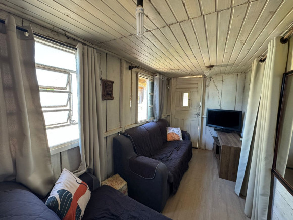 Chalé próximo a lagoa dos patos, contendo um dormitório, cozinha, sala de estar e jantar conjugada, com amplo pátio com árvores frutíferas. Peça de alvenaria anexa. Terreno medindo 10x20m.