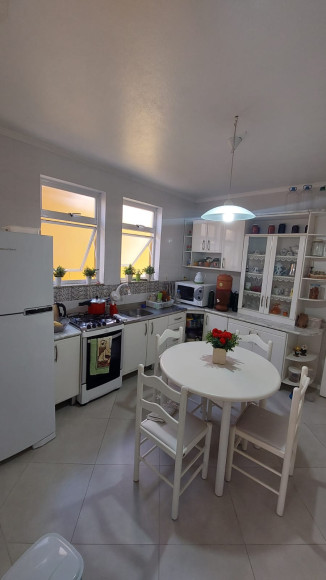 Casa de alvenaria e laje, com paredes duplas de tijolo maciço. Casa da frente possui 2 dormitórios, sendo uma suíte, sala de estar, sala de jantar, cozinha, banheiro, lavanderia e área coberta com churrasqueira, que da acesso a casa dos fundos, que possui 2 dormitórios, sala, cozinha e lavanderia. Terreno 12x32, com espaço para estacionamento, amplo jardim e poço artesiano.