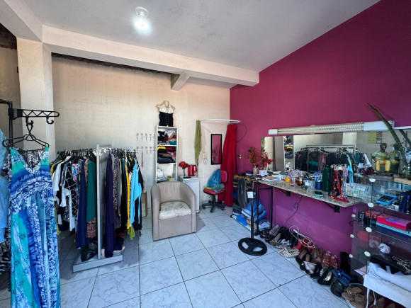 Sobrado de alvenaria: 1º piso: 01 dormitório, sala, cozinha, banheiro e sala comercial. 2º piso: Em construção (inacabado), com 02 dormitórios, sala de estar e jantar, cozinha e banheiro.
