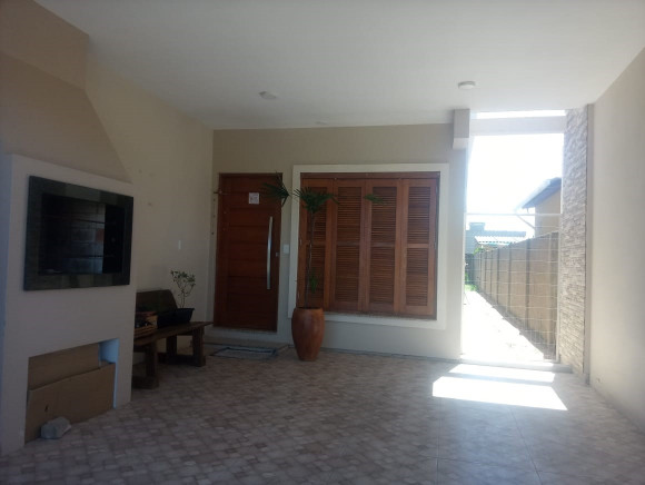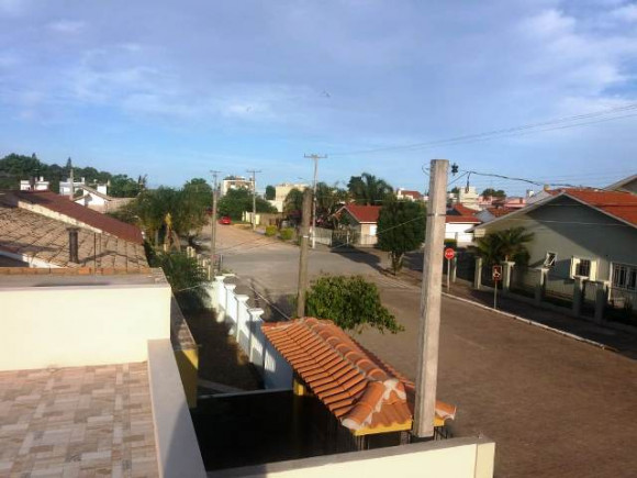 Sobrado em alvenaria e laje: 03 dormitórios, sala com cozinha conjugada e lareira, área de serviço, 02 banheiros, abrigo para 02 carros, ampla sacada com vista para a lagoa, pátio nos fundos. Terreno: 5,00m x 35,00m.