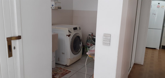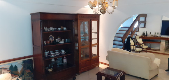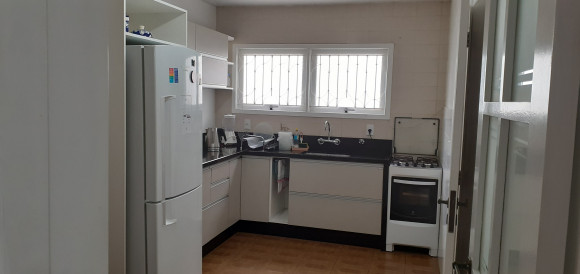 Sobrado : 2 salas, 1 sala de jantar, 1 lavabo, cozinha, 1 banheiro, lavanderia, garagem para 2 carros. Em cima : 3 quartos, 1 suíte, 1 banheiro