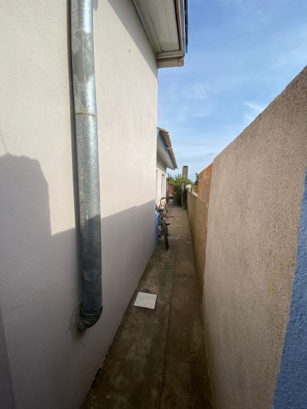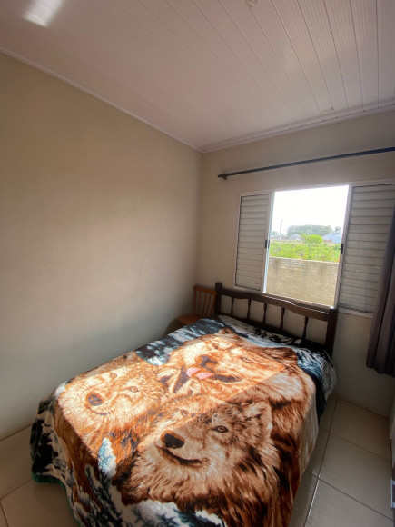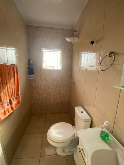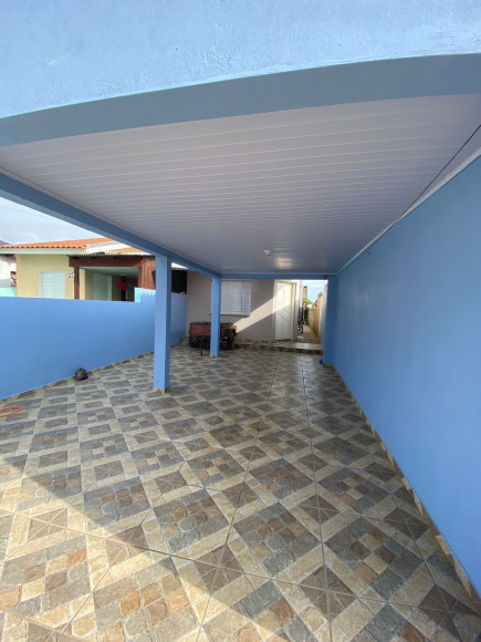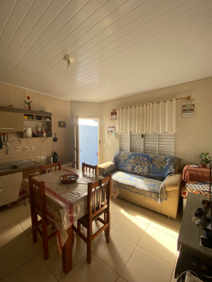 Casa de alvenaria, telhas e forro PVC, contendo 2 dormitórios, sala/cozinha, banheiro, abrigo para o carro e pátio.