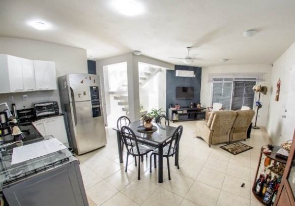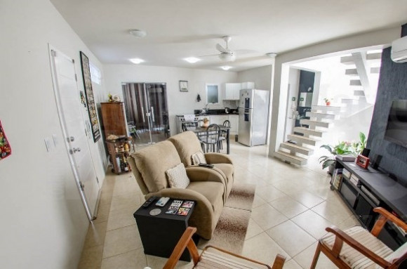 Excelente sobrado: Parte Térrea: sala, copa, cozinha, banheiro, lavabo, área gourmet com churrasqueira e pia, lavanderia. 1º Piso: 01 dormitório, 01 suíte com closet ( banheiro com duas cubas), todas as torneiras possuem duplo comando para água quente e fria;- todos os chuveiros possuem sistema de água quente e ou elétrico, instalação elétrica separada por andar, espera separada de hidráulica e elétrica para a parte dos fundos, pátio fechado com 8,5 x 27mt, possui mais de 40 mudas de arvores frutíferas e trepadeiras, todos os quartos e o andar térreo possuem ar condicionado tipo split dimensionado;- a casa possui estrutura para o terceiro andar; sendo que já foi deixado esperas para hidráulica e elétrica. Pergolado coberto na frente do imóvel com policarbonato para dois carros, estrutura para construção de andar acima dele, os móveis que são planejados (quarto casal, balcão cozinha, balcão churrasqueira, balcão pias suíte, balcão pia lavabo) ficam dentro do valor e pertencem a casa. Móveis podem ser negociados a parte.