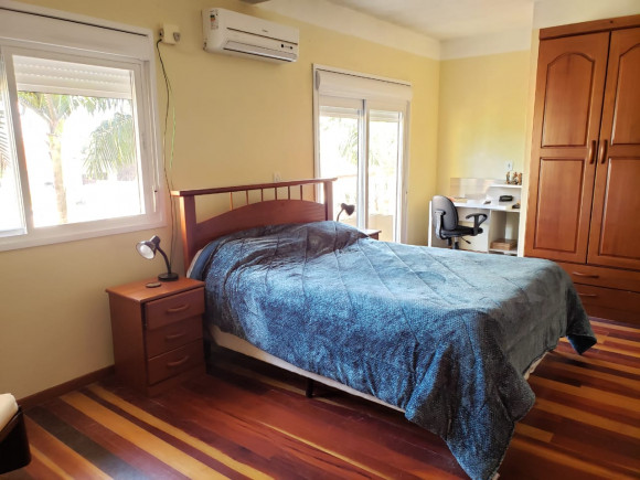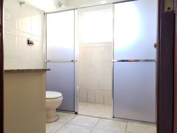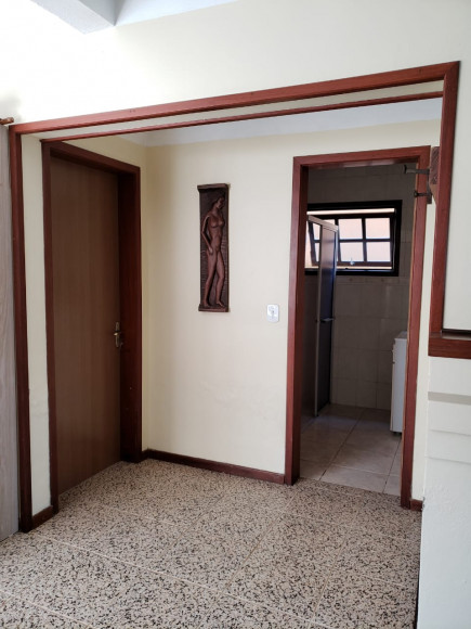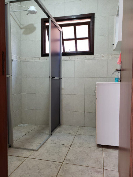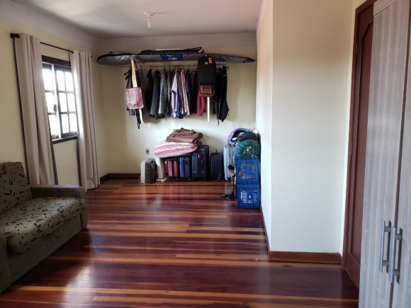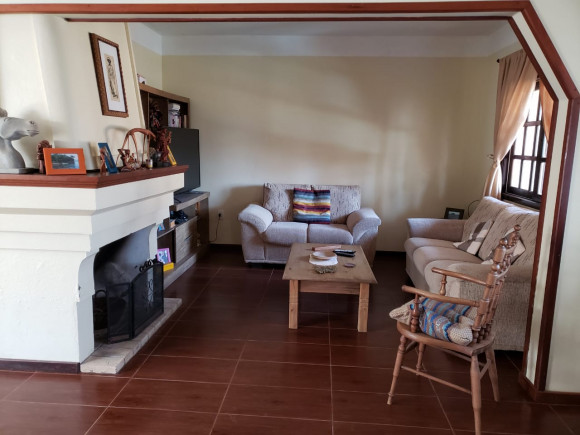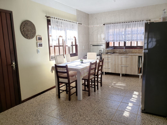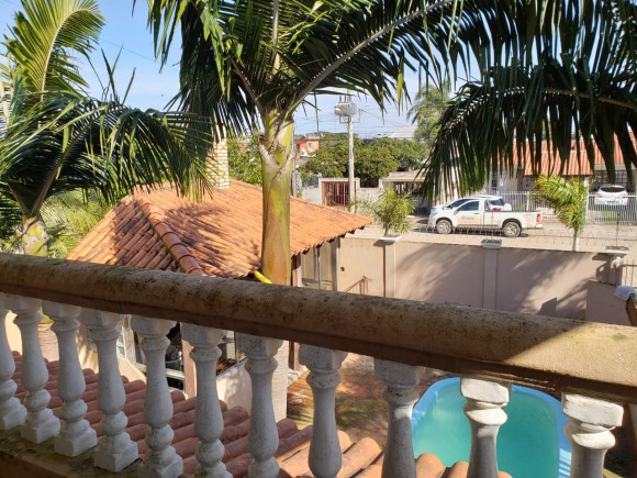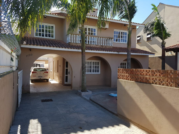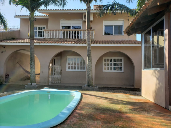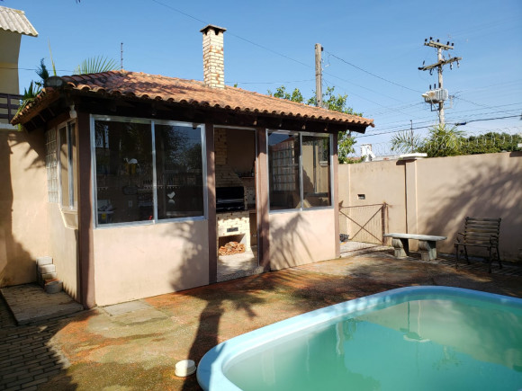 Sobrado de alvenaria laje: Térreo: sala de estar com dois ambientes e lareira, cozinha, escritório (quarto), 01banheiro. 1º Piso: 03 dormitórios amplos, sacada frontal e 01 banheiro. Fundos: garagem fechada, 01 banheiro e um abrigo lateral tudo em alvenaria, frente da casa com piscina e quiosque com churrasqueira e pia, pátio todo calçado.