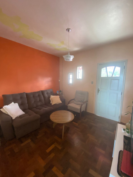 Casa de alvenaria e laje com 02 dormitórios, 01 banheiro, sala, cozinha e garagem fechada. Amplo pátio todo murado.