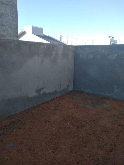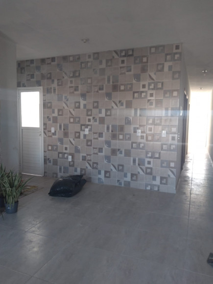 Casa de alvenaria laje: 01 suíte, 02 dormitórios, sala de estar com lareira e cozinha com churrasqueira num conceito amplo, banheiro social. Fundos: área de serviço e pátio.
