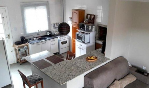 Sobrado em alvenaria com amplas aberturas, bem iluminado. No térreo, sala de estar com lareira e cozinha integrada com bancada em granito e churrasqueira, lavabo e área de serviço, no 1° piso, 02 dormitórios e banheiro. Anexo nos fundos com mais 02 dormitórios, sala, cozinha e banheiro. Local seguro e silencioso a duas quadras da lagoa.