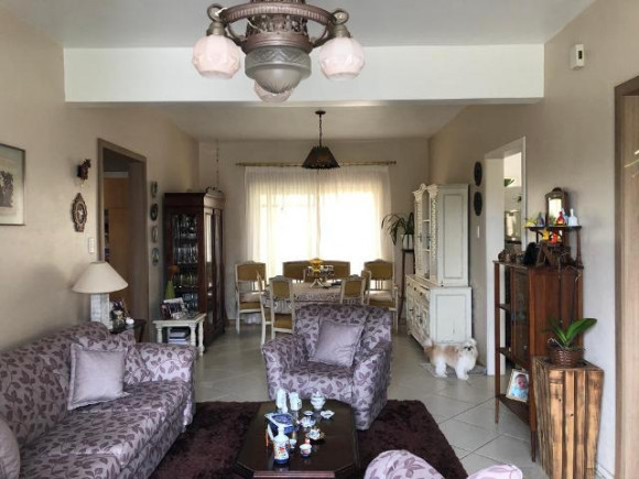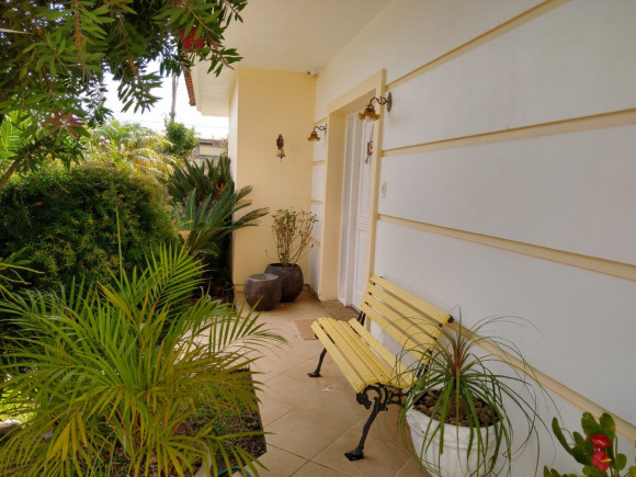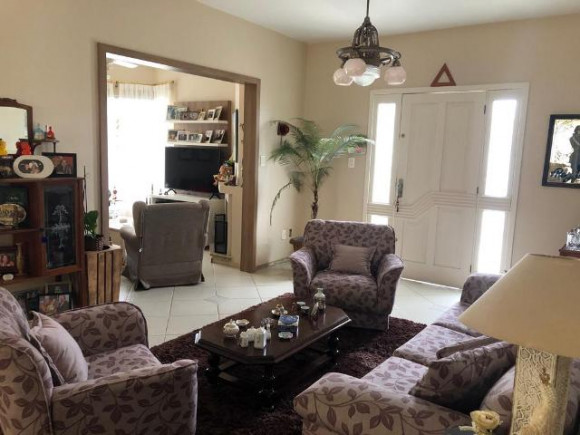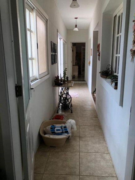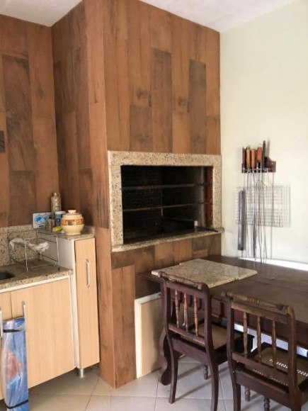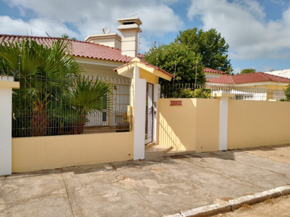Casa de esquina em alvenaria com fino acabamento, construção sólida com laje e telhas. Possui 04 dormitórios sendo 01 suíte, 02 banheiros sociais, sala de estar, sala de tv com lareira, cozinha, área de serviço, garagem para 02 carros com pia e churrasqueira, piscina e gerador com instalação em todas as peças e aquecimento a gás em todos os banheiros e cozinha. Os móveis sob medida ficam na casa.
