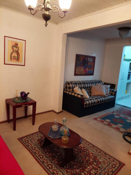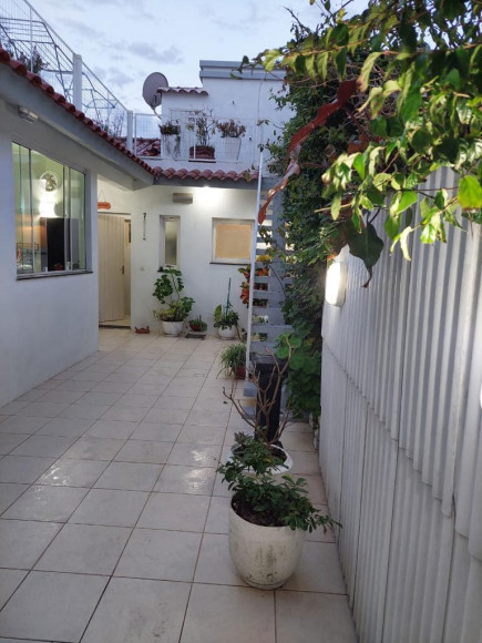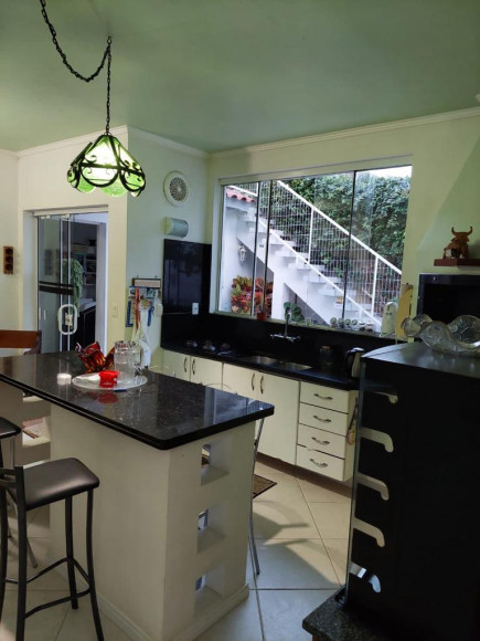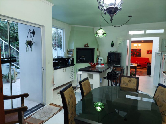 Casa em alvenaria e laje com estrutura p 2° piso e excelente posição solar, frente oeste. Possui 02 dormitórios sendo 01 suíte com closet, 02 salas de estar sendo 01 com lareira, cozinha com bancada em granito e churrasqueira, 02 banheiros, lavanderia, pátio e terraço e garagem fechada. Ficam os móveis sob medida.