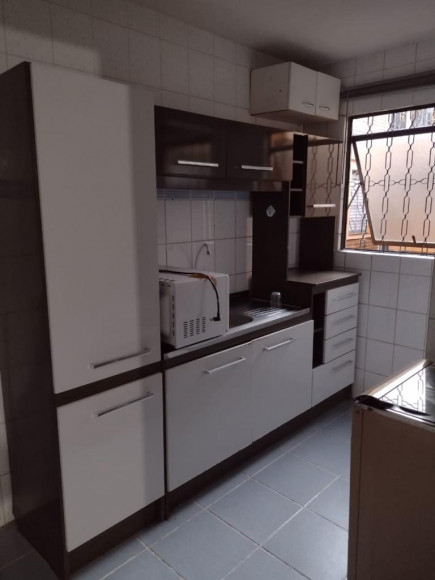 Apartamento 2º andar: 03 dormitórios, sala de estar, cozinha, área de serviço, banheiro com box, box de garagem coberto.