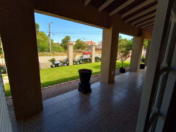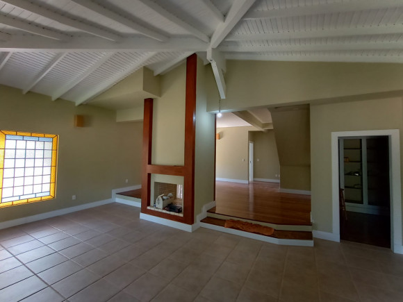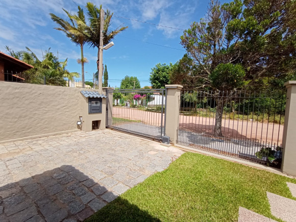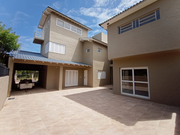 Sobrado amplo em alvenaria: Hall de entrada, sala de estar com lareira com dois ambientes, lavabo, sala de jantar, escritório, sala de leitura/individual com lareira, cozinha, despensa, lavanderia, banheiro, dependência de empregado, banheiro, na parte superior dois dormitórios amplos, uma suíte com sacada, banheira e closet, mezanino com sacada e vista para lagoa. Na parte inferior 01 apartamento independente com saída pela lateral com : sala de estar ampla, cozinha, banheiro, dormitório. Fundos: Espaço gourmet fechado, com churrasqueira, pia e balcão americano, tudo em madeira nobre. Vaga de garagem para 03 carros com um imenso pátio ao redor do imóvel. Terreno: 20 x 30 (aceita imóvel de menor valor )