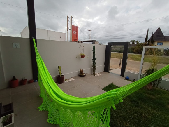 CASA DE ALVENARIA E LAJE: 02 dormitórios, sala de estar com lareira e cozinha sob medida (bancada de escritório sob medida), banheiro social com box de vidro, área de serviço, garagem ampla com churrasqueira e pia de mármore fechada com vidro, terreno amplo, todo fechado.