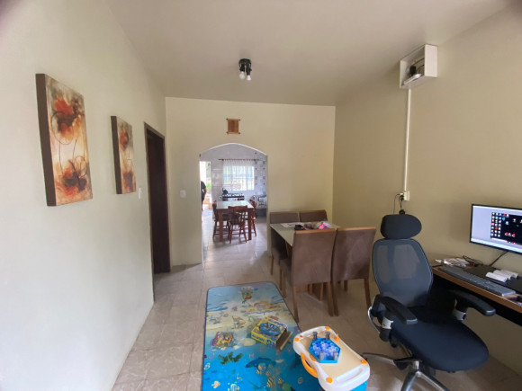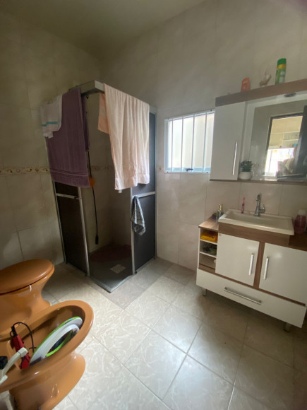Casa de alvenaria e laje 03 dormitórios, sala estar e jantar. cozinha e banheiro social com box. Dois espaços com churrasqueira, banheiro e garagem para dois carros Amplo pátio com flores e árvores frutíferas. Excelente posição solar!