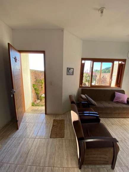 Sobrado em alvenaria com excelente posição solar, contendo 2 dormitórios, sala e cozinha, banheiro e pátio calçado com churrasqueira e área coberta. Terreno medindo 5 x 30.