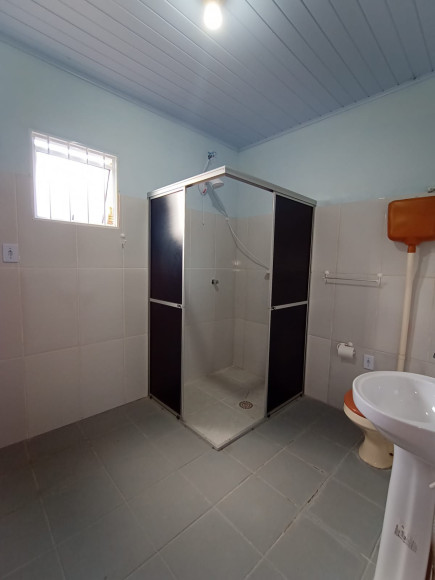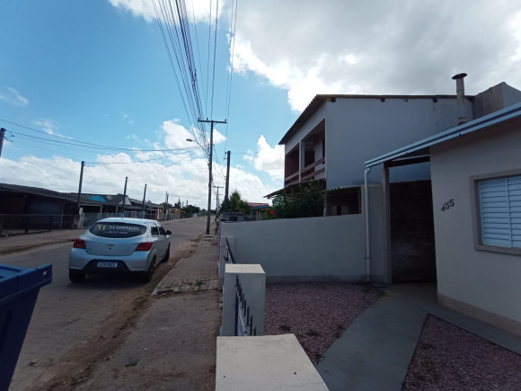 Casa de Alvenaria: 2 dormitórios, sala e cozinha conjugadas, banheiro social, pátio nos fundos. Rua calçada e apta a financiamento.