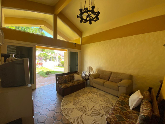 Belíssima casa á venda em alvenaria e laje no Balneário com 419,03 m² de área construída, contando com vários móveis sob medida e ares condicionados, que ficam no imóvel. O imóvel possui hall de entrada , sala de estar com lareira, sala de jantar, cozinha com churrasqueira, 4 dormitórios, sendo 1 suíte, sala de TV com lareira, 03 banheiros, lavanderia, dependência de empregada, garagem fechada e abrigo lateral. Pátio frontal com lindo jardim e amplo pátio fechado nos fundos . Frente Sul. Terreno medindo 19,50 x 58.