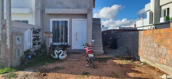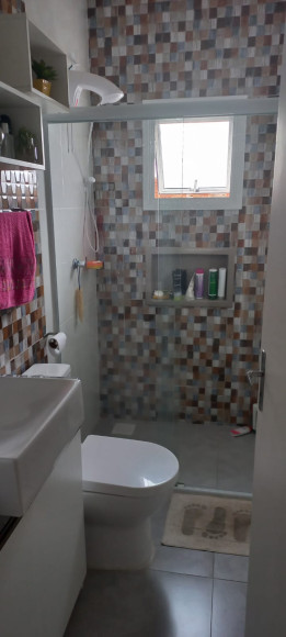 Casa de alvenaria e laje com dois dormitórios, sala e cozinha conjugadas, banheiro e lavanderia. Parte superior com um dormitório, banheiro e cozinha