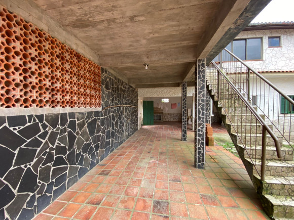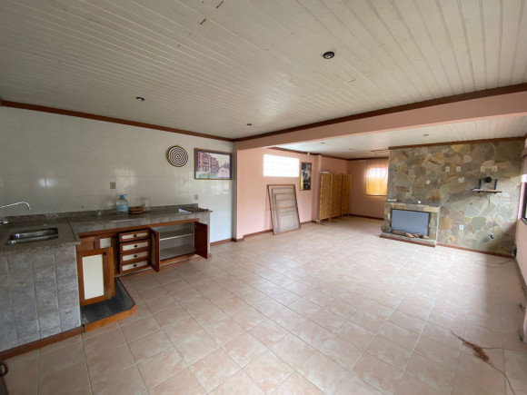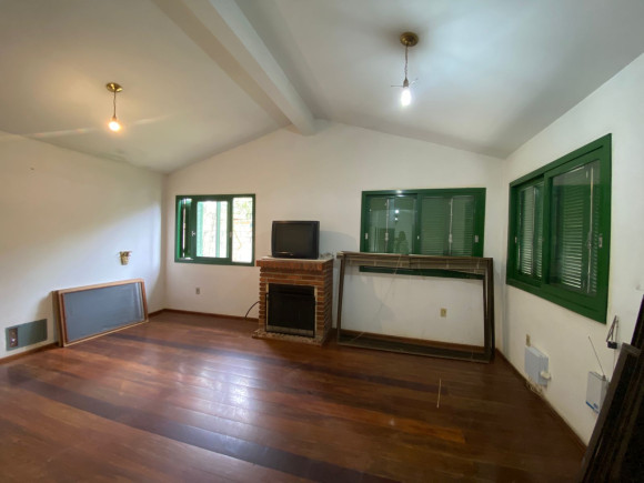 Casa em alvenaria contendo sala de estar com lareira, cozinha, sala de jantar, 02 dormitórios, 01 banheiro.