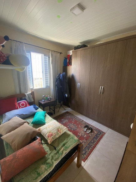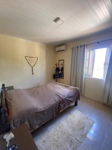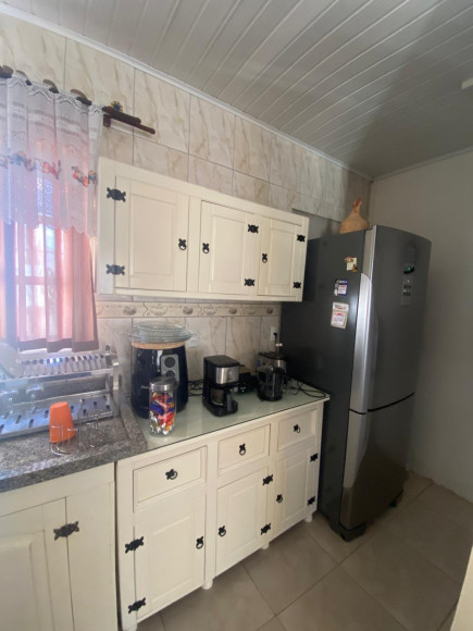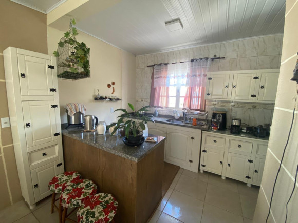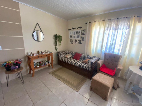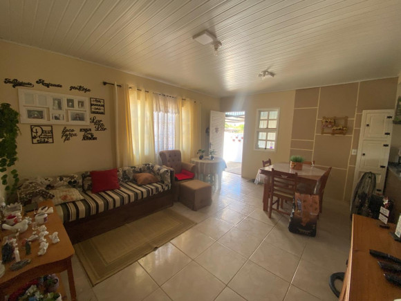 Casa em alvenaria, contendo dois dormitórios, sala, cozinha, banheiro, garagem com churrasqueira.